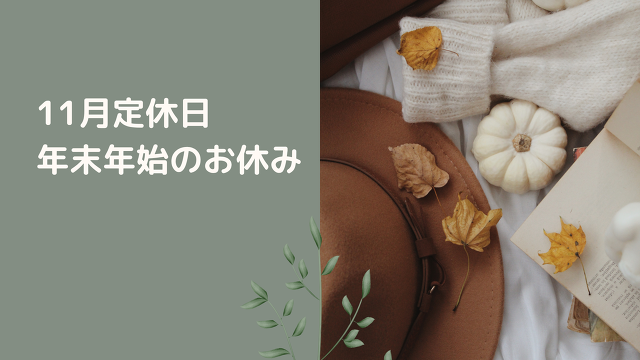 11月定休日・年末年始お休みお知らせ