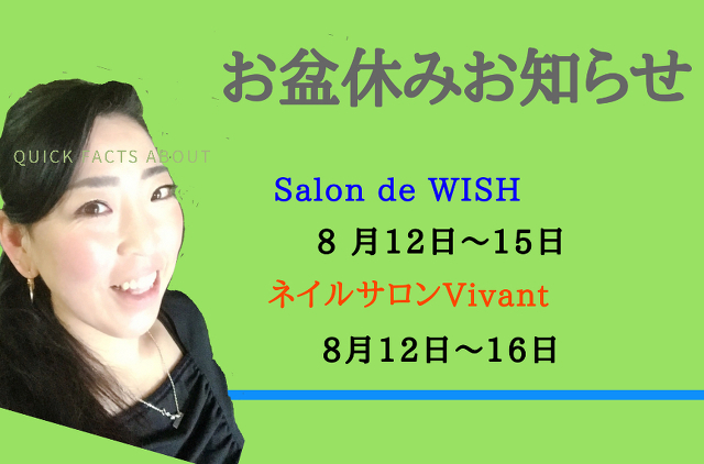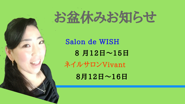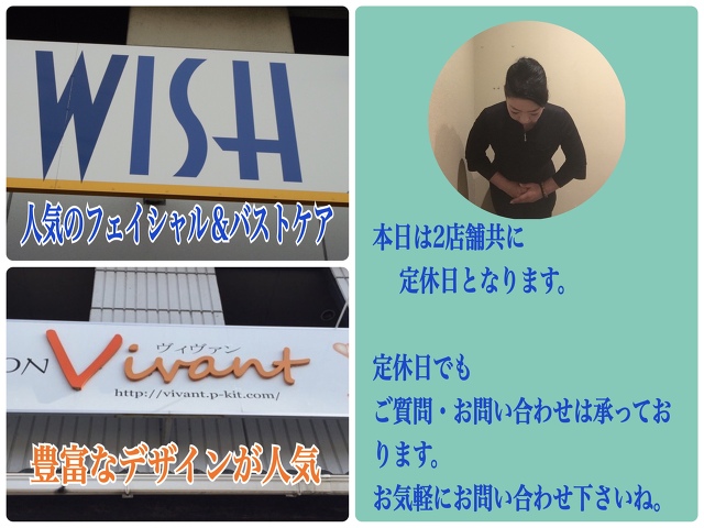 ※エステサロンWISH & ネイルサロンVivantのブログとオーナーブログは『お知らせ情報』の下に『ブログ更新情報』からどうぞm(__)m