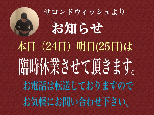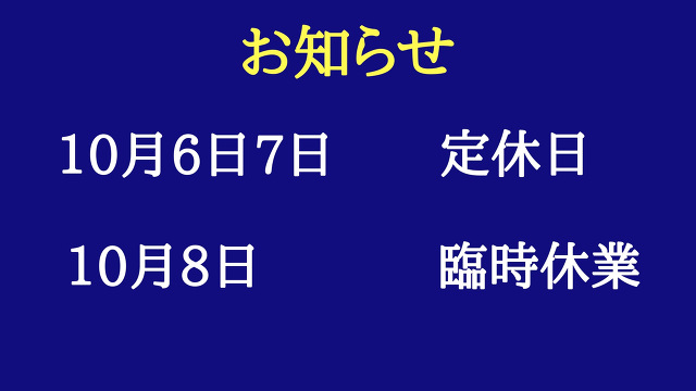 本日は定休日となります。