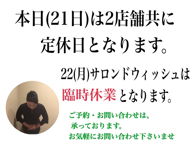 本日よりSalon de WISH通常営業しております。
