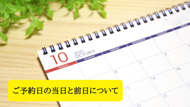 当日のキャンセル、ご変更は、いかなる理由があろうとも、キャンセル料5,000円又はコースは1回分消去。